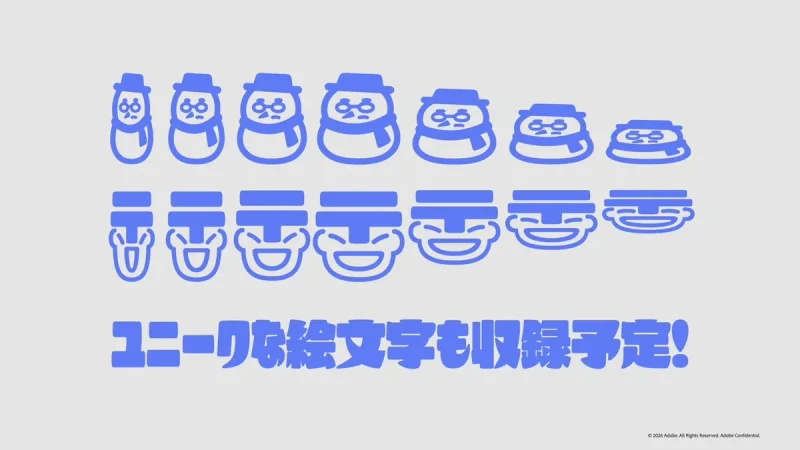 このほか、郵便マークや雪だるまなどの絵文字も収録予定で、いずれもレトロで可愛らしく、見た瞬間にクスッと笑えるようなデザインを目指しているという。これらもバリアブルフォントとして変形可能になる見込みだ。