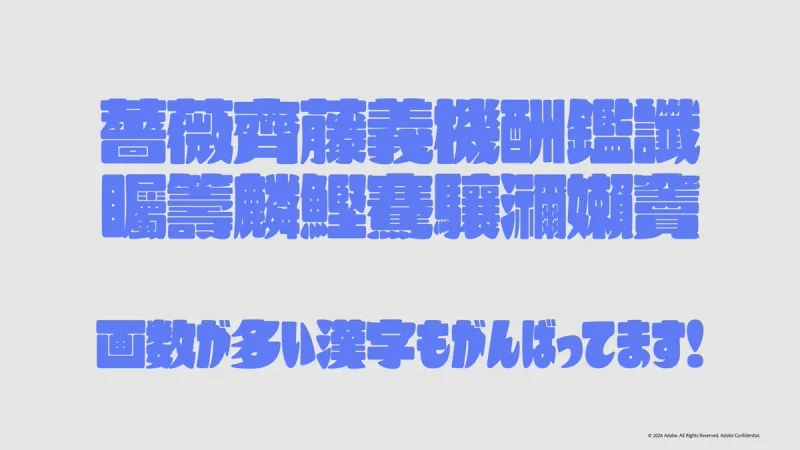極太書体は人気が高い一方で、一般的な太さのフォントに比べると市場における選択肢自体がまだ少なく、ユーザーが選べる書体が限られる。こうした背景を受け、「アドビオリジナルの極太書体を作りたい」という考えが、今回の開発の出発点になったという。