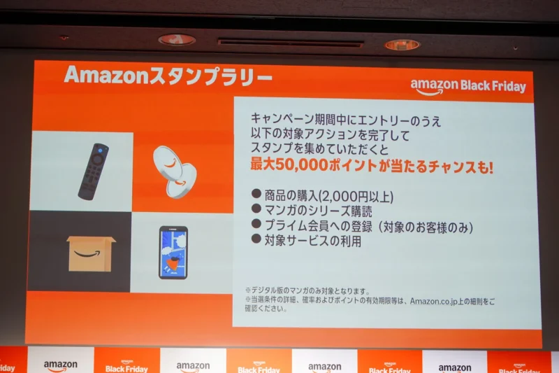 今回のブラックフライデーは、買うだけでお得になりやすい施策が多い。とくにポイントアップキャンペーンとスタンプラリーは、忘れずにエントリーしておきたいところだ。スタンプラリーについては、今年は「Amazon スタンプラリー」と「dポイントスタンプラリー」の2つが実施される。