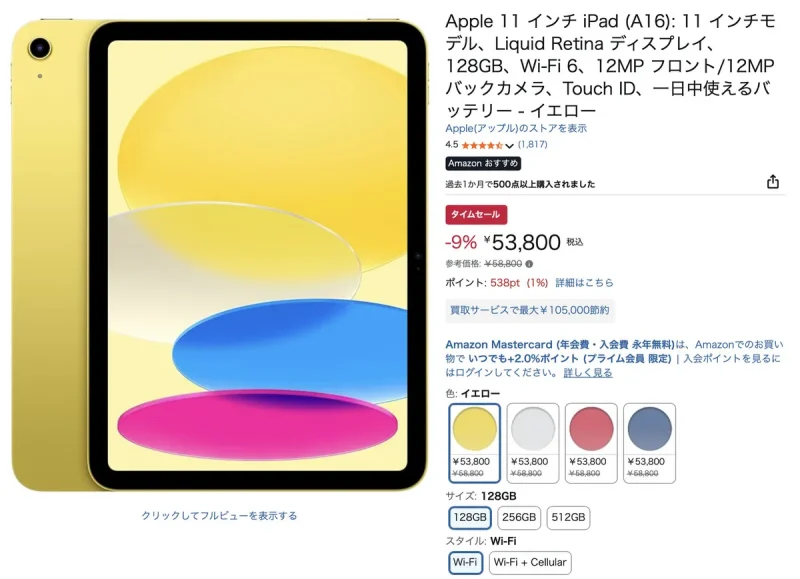 iPad (A16) もお得、5万円台で購入可能