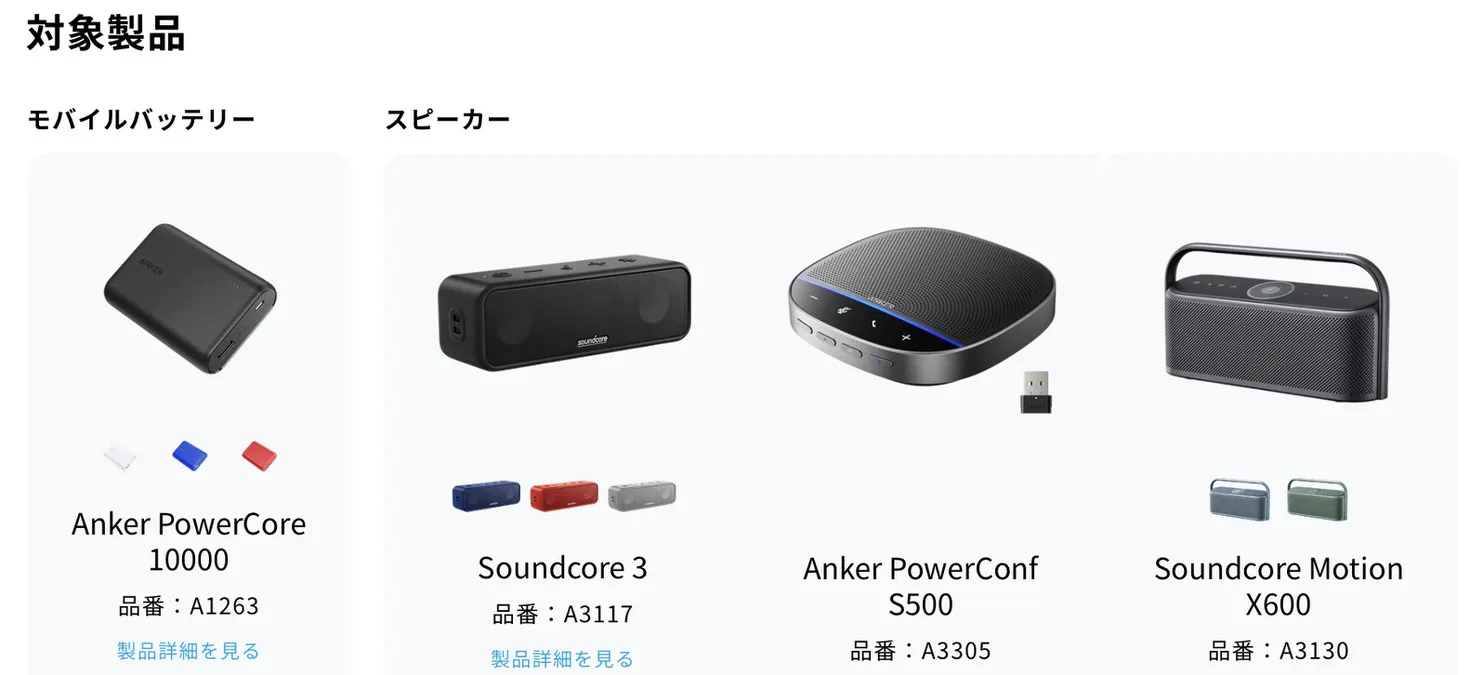 アンカー・ジャパンは10月21日、モバイルバッテリー「Anker PowerCore 10000」やBluetoothスピーカー「Soundcore 3」など、計4製品の自主回収を発表した。
