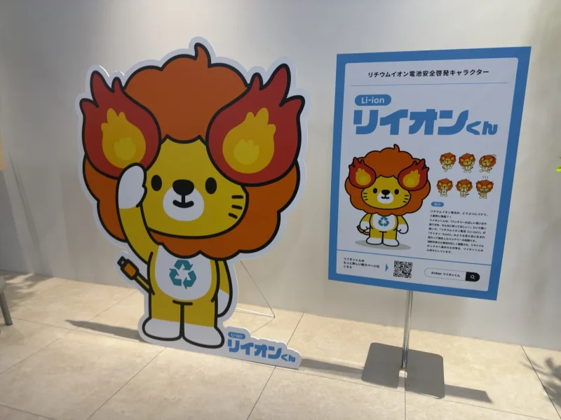 製品の「廃棄」段階では、安全啓発キャラクター「リイオンくん」を発表した。リチウムイオン電池の危険性や正しい廃棄方法を伝える目的で制作され、啓発用途に限り画像データを無償提供する。