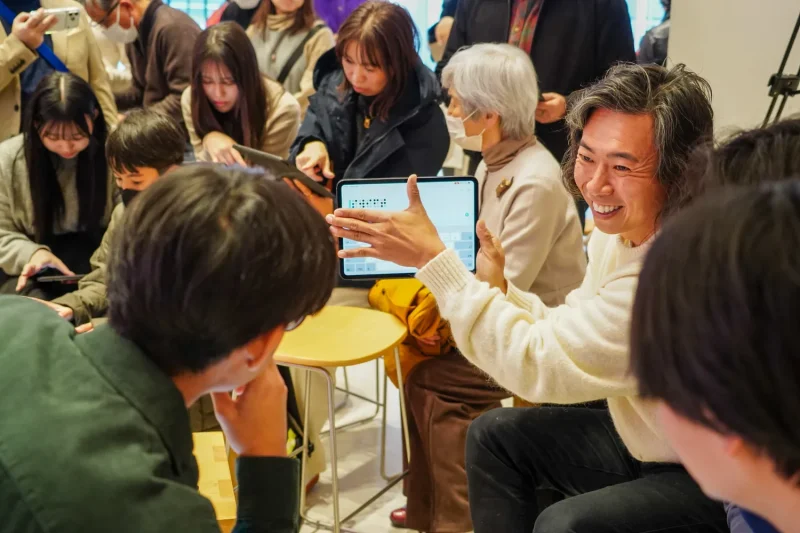 アプリ紹介後には、参加者全員にiPadが配布され、各開発者のブースを回りながら実際にアプリを体験できる時間が設けられた。開発者本人が使い方をレクチャーし、その場で質問に答える形式で進行し、学生から年配の参加者までがそれぞれの視点でアプリを楽しむ様子が印象的だった。