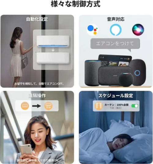 赤外線リモコン機能も充実している。360°赤外線ブラスターにより複数の家電を操作でき、学習機能で未登録の家電も認識可能。操作状態はアプリ上で同期され、物理リモコンで操作しても状態が正確に反映される。
