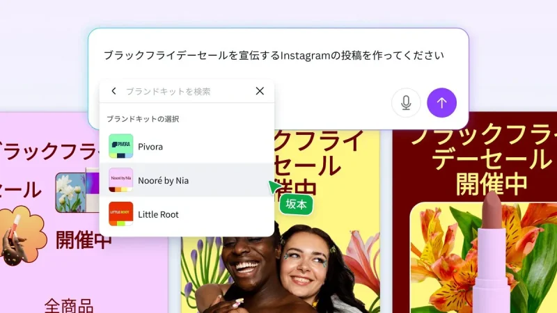 AIはエディター全体に統合されており、素材や写真、3Dモデルを入力するだけで自動的にレイアウトを作成。新機能「スタイルマッチ」では、ブランドカラーやトーンを自動で合わせ、統一感ある仕上がりを維持する。