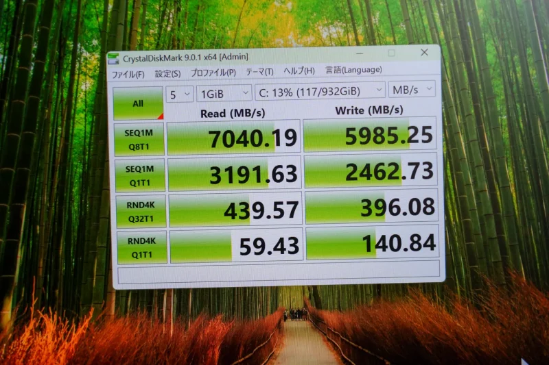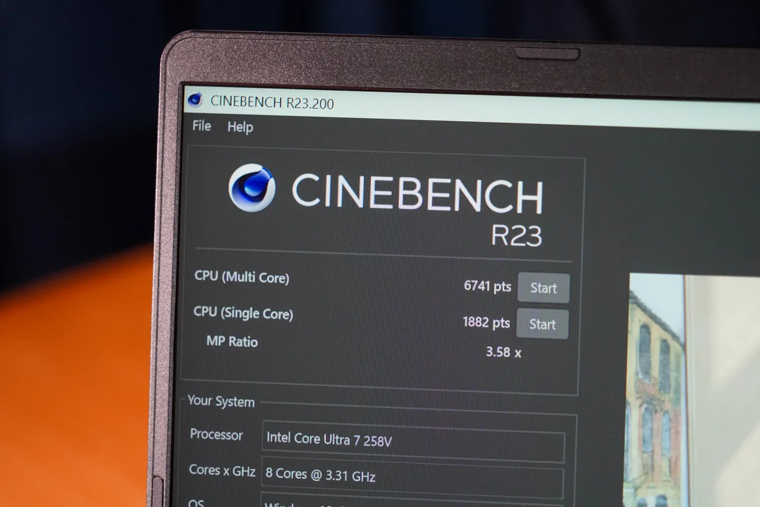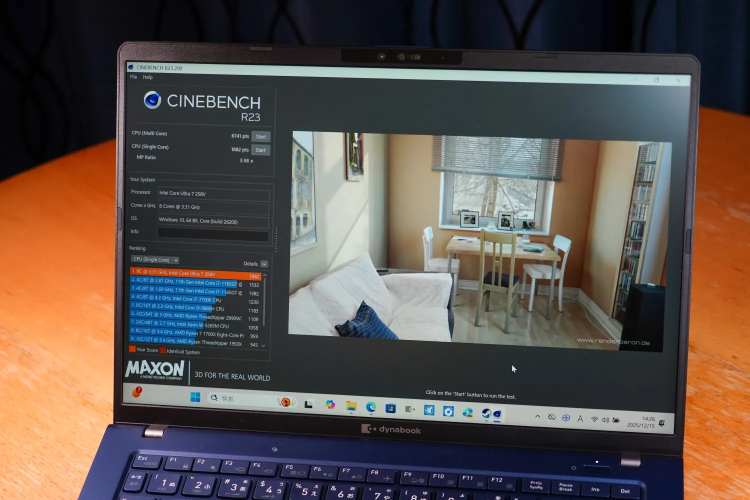 Cinebench R23は、シングルコアが1882、マルチコアが6741。シングルコア性能は現行世代のモバイルCPUとして十分に高く、Web閲覧やアプリの起動、日常的な操作では動作のもたつきを感じにくい水準だ。