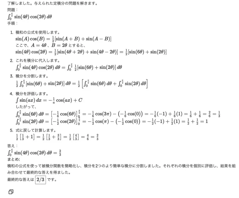 色々な計算をお願いしてみたところ、複雑な計算式を解くのはもちろん、証明問題なども順を追って説明してもらうことができた。