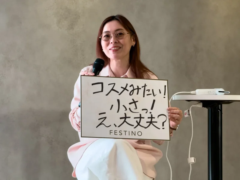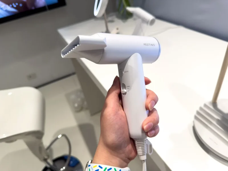 FESTINOは2018年にスタートし、今年で8年目を迎えるブランドだ。ブランドディレクターの大滝裕子氏は、2022年に業界最軽量クラスとなる約270gの「ツヤモイスト ドライヤー」を発売して以来、「軽さ・速乾力・仕上がり」の3点を軸に製品開発を続けてきたと説明する。