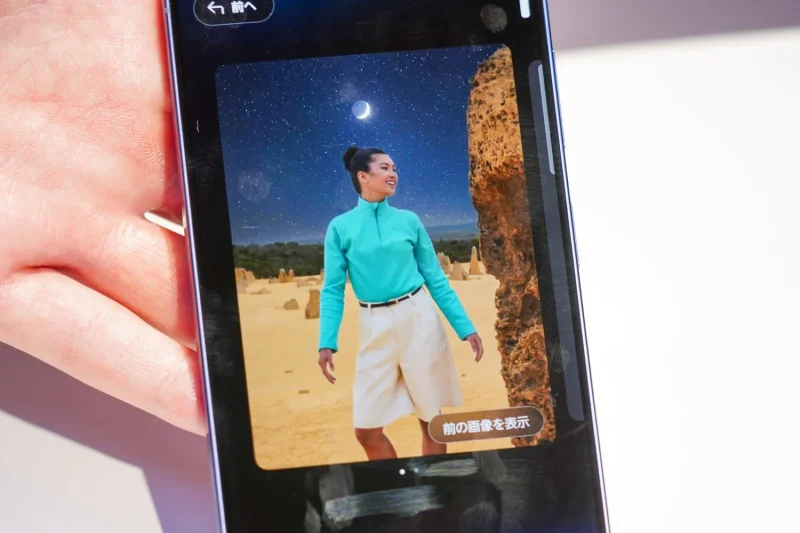 カメラについては、Galaxy AIと一体化することで、より高度なことができるようになった。フォトアシストはプロンプトベースで写真に手を加えることができるようになり、デモでは昼の写真を自然な夜景に変える様子が披露された。特定の写真に別の写真を合成して、被写体の服装を変えるということも可能だ。