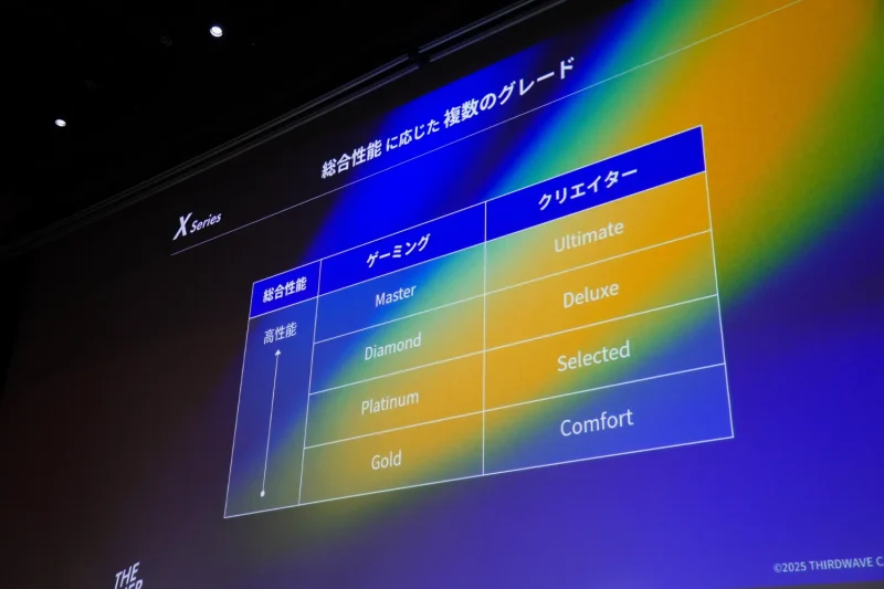 会場では、取締役最高執行責任者の永井正樹氏、PC統括本部統括本部長の西村祐典氏が登壇し、ブランドの新方針を説明。さらにAMD、インテル、日本マイクロソフト、エヌビディアなどの関係者が来賓として登場し、各社の代表が祝辞を述べた。