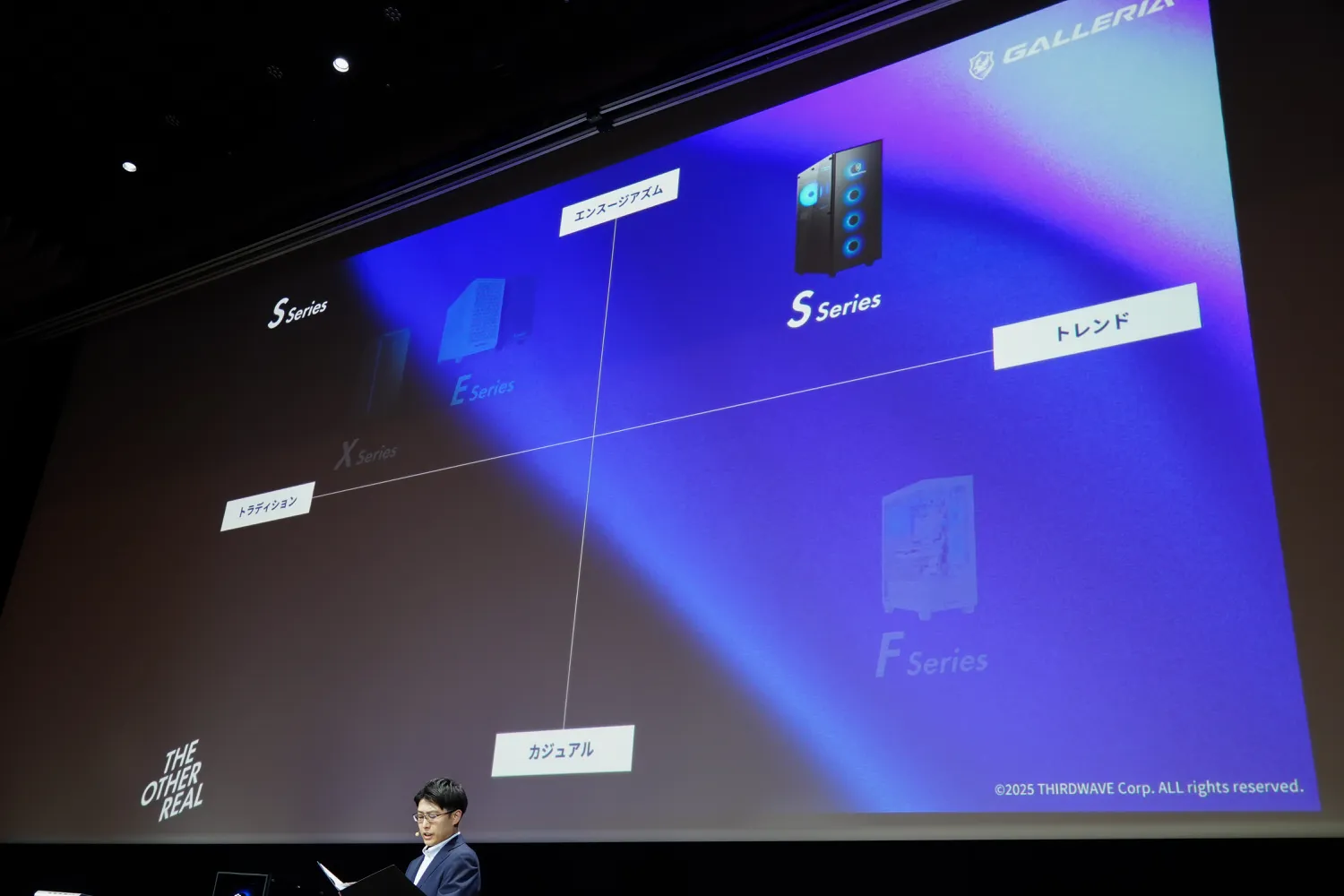 今回のリニューアルで、GALLERIAは従来の単一シャーシ展開から脱却し、「S」「X」「F」「E」の4シリーズと「GALLERIA Special Line(GSL)」という1カテゴリによる新体制を導入する。