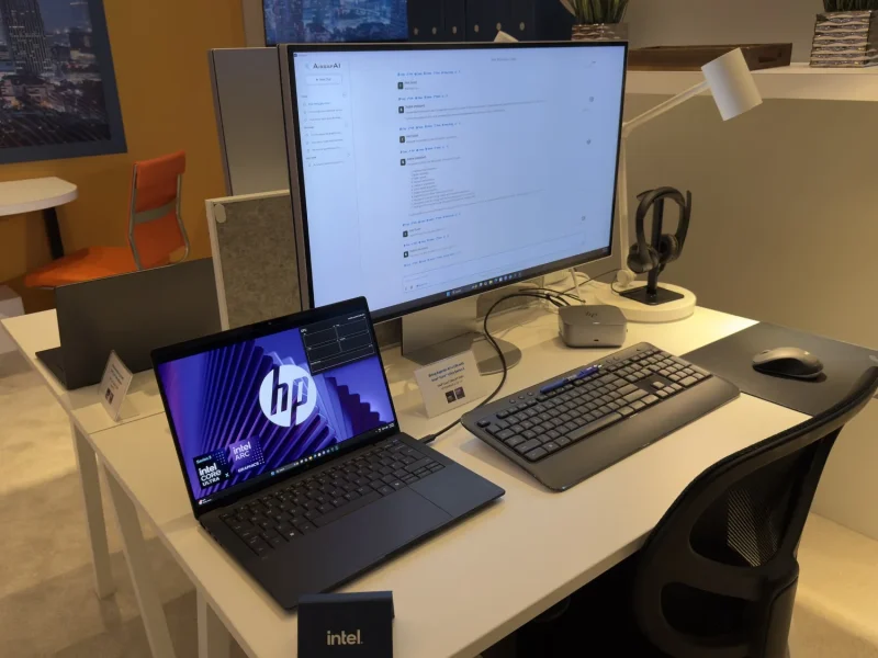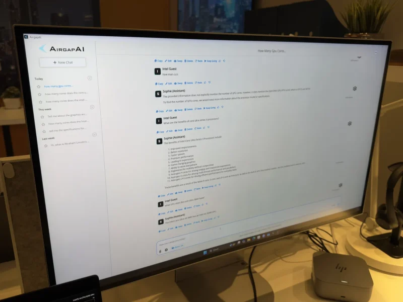 最後に体験したのが、HP EliteBook X G2i 14-inch(Core Ultra X7 358H)を用いた「AirgapAI」デモだ。ネットワークから完全に切り離した、いわゆるエアギャップ環境で、小規模言語モデル(SLM)をローカル実行する構成となっている。