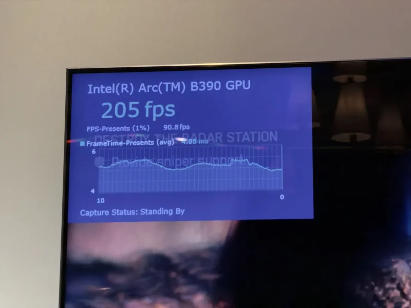 続いて、内蔵GPU「Intel Arc B390」の性能を確認するデモとして、Lenovo IdeaPad Pro 5(Core Ultra X9 388H搭載)を用いた『Battlefield 6』のプレイが披露された。展示機は実際に操作できる状態で、実ゲームに近い条件で挙動を確かめられるようになっていた。