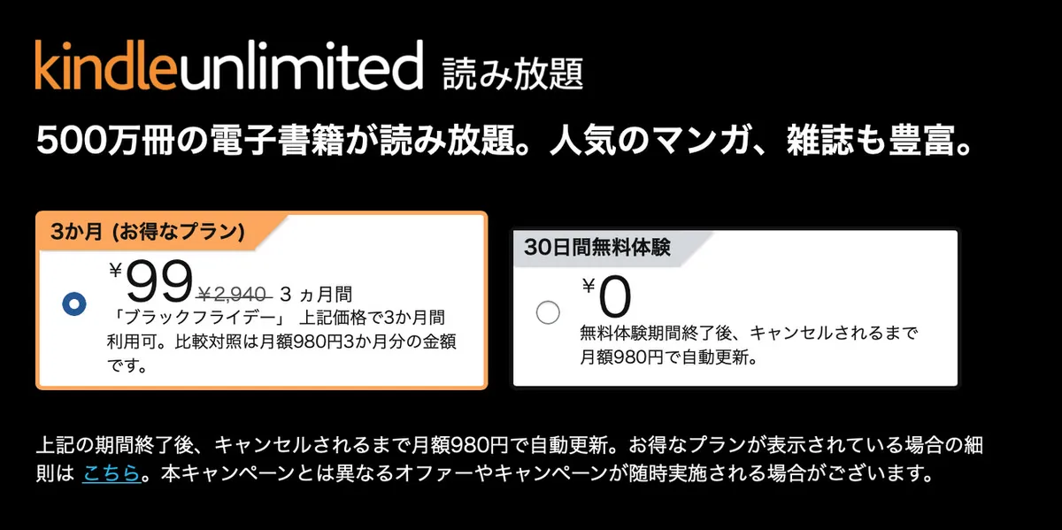 ▶︎ Kindle Unlimited「ブラックフライデー」キャンペーン