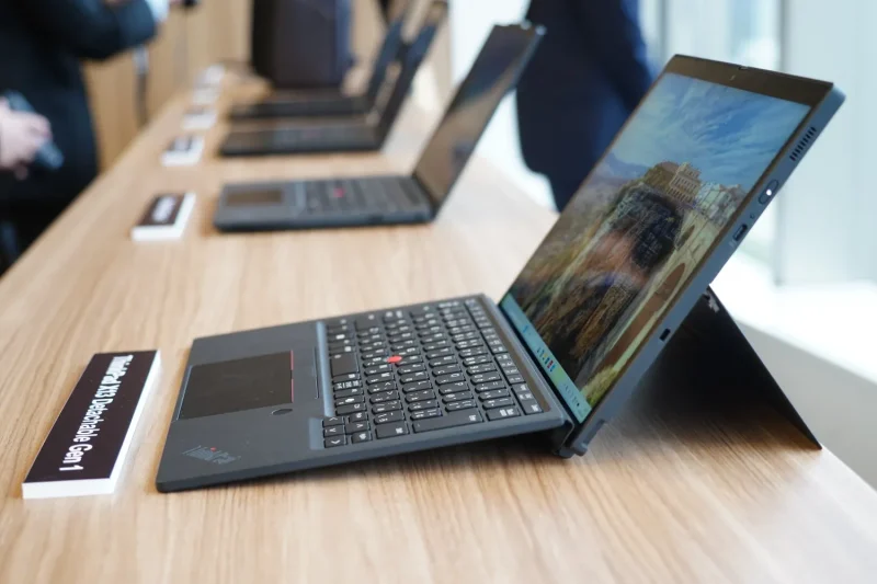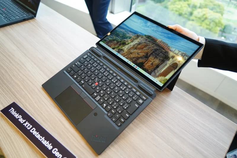 Xシリーズは、約936gの13.3型モバイル「X13 Gen 7」と、13型に大型化した着脱式「X13 Detachable Gen 1」を展開。後者は指紋認証付きフォリオキーボードを採用する。