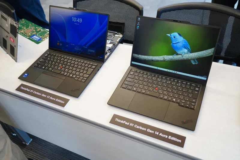 フラッグシップモデルの「ThinkPad X1 Carbon Gen 14 Aura Edition」は、新構造「スペース・フレーム」を採用。