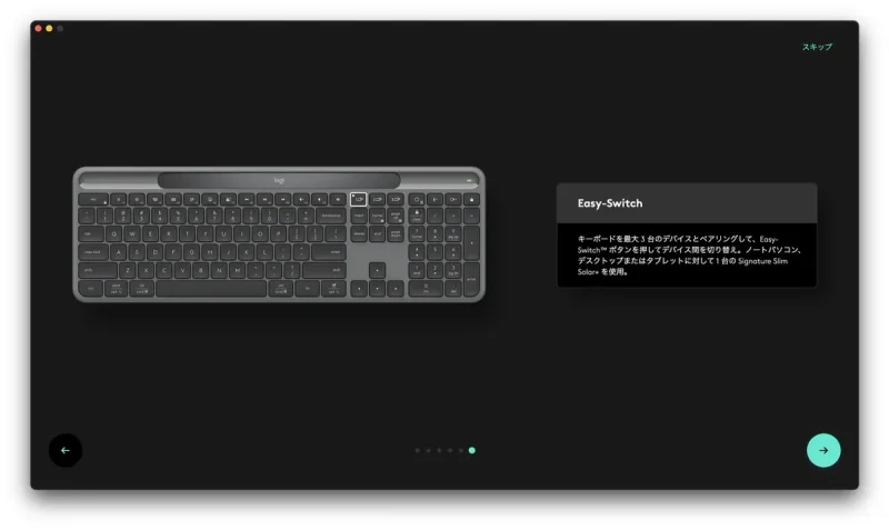 Easy Switchボタンを使えば、登録した最大3台のデバイスをワンタッチで切り替えられる。ノートPCからタブレット、スマホへと瞬時に入力先を変えられる点は非常に便利で、在宅勤務や複数端末を併用するユーザーに向いている。