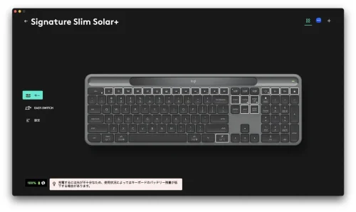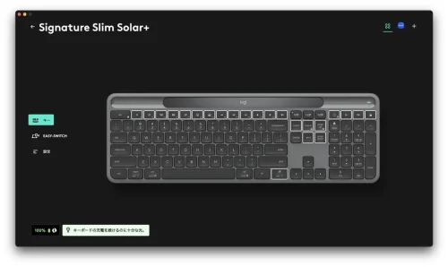 なお、K980を充電できているかどうかは、専用アプリ「Logi Options+」で確認ができる。試しに夜に照明を消して計測してみたところ「充電するには光が不十分」と表示された。これが出る環境で本製品を使用し続けるのは難しいということになる。