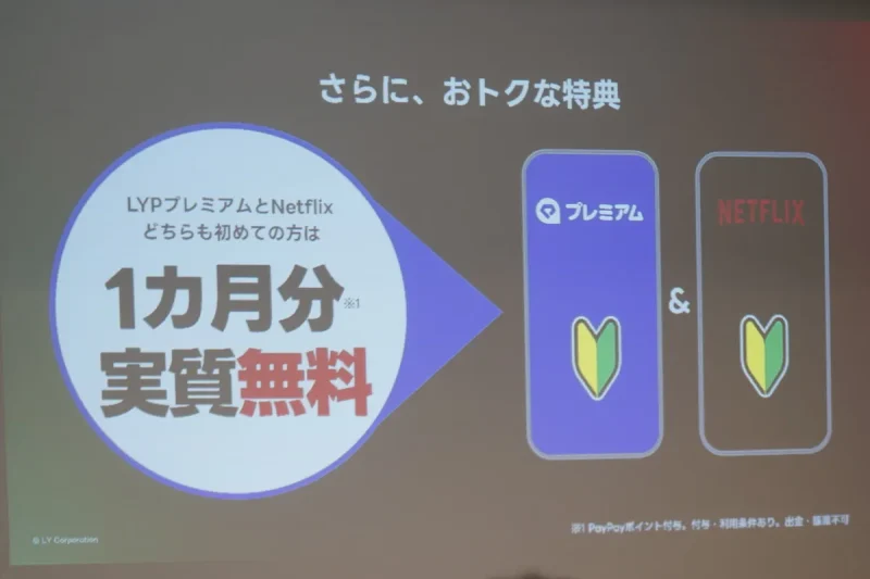 新プランのリリースと同時に、LYPプレミアムとNetflixの利用がどちらも初めてのユーザーに対し、1ヶ月分の月額料金に相当するPayPayポイントを付与するキャンペーンも実施予定だ。本キャンペーンに関しては、プランの提供開始に合わせて案内があるとのこと。