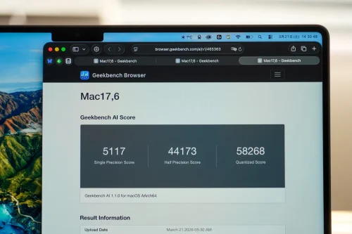 AIベンチマークでもGPUスコアが大きく伸びており、このチップがどの用途を見据えているのかは明らかだ。動画編集の高速化というよりも、「AI処理をローカルで完結させる」ことに重点が置かれている。もっと言うと、M5 Maxは「重い作業を速くするチップ」ではなく、「これまでできなかった作業を可能にするチップ」へと進化しているとも捉えることができるだろう。