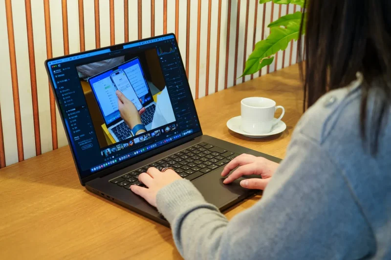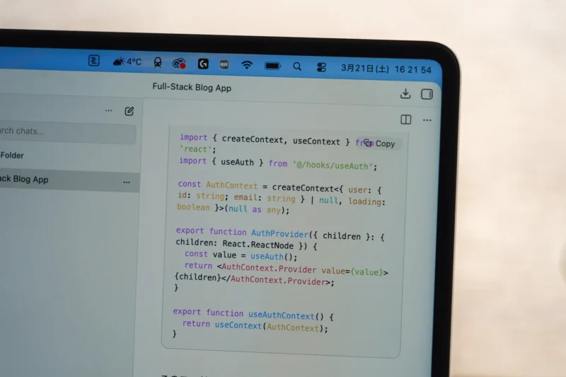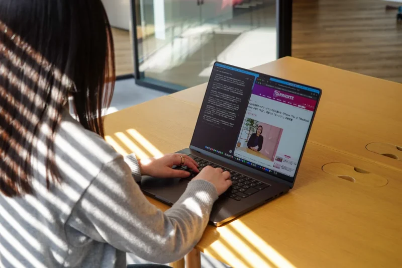 16インチモデルは、持ち運びやすさという点では14インチに劣るものの、表示領域の広さが大きな武器になる。実際に使ってみると、コードエディタとブラウザ、ドキュメントを並べても余裕があり、ウィンドウを切り替える回数が減る。開発や編集作業では、この差がそのまま効率に直結する。