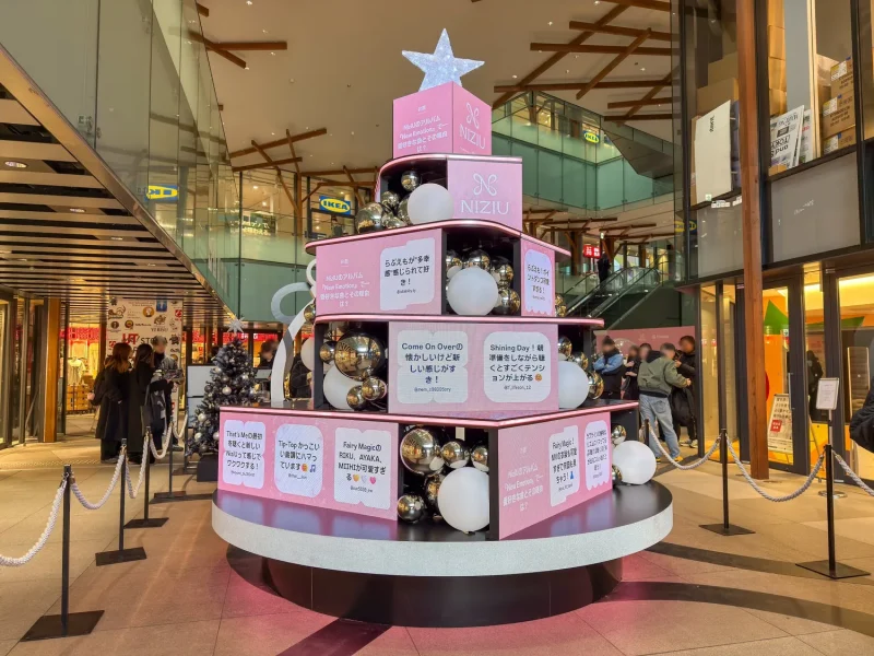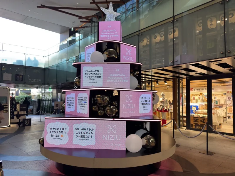 イベント期間中は9人組ガールズグループ・NiziUとのコラボ企画も展開される。取材時にも、一部時間帯でツリー全体がNiziU仕様のビジュアルに切り替わる「NiziUジャックタイム」が紹介された。メンバーのアルバム『New Emotion』をモチーフにしたデザインが表示され、関連のお題に投稿するとツリーに反映される。