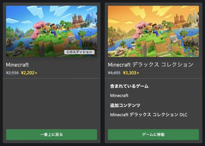 | Minecraft: Java & Bedrock Edition Deluxe Collection | 5,874円 | 4,405円 | Windows PC |