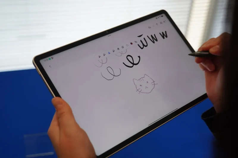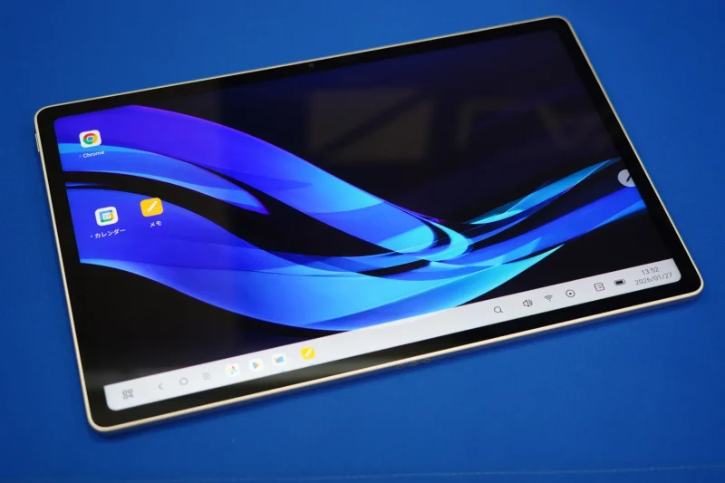 SoCにはMediaTek Dimensity 6400を採用し、メモリは12GB、ストレージは256GB。表示領域はB5ノート相当で、11型クラスよりも作業スペースに余裕がある。画面分割での作業や文書作成にも対応しやすいサイズだ。