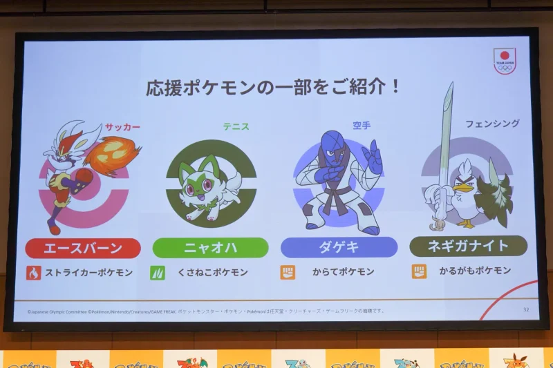 競技別応援ポケモンとして、サッカーにエースバーン、テニスにニャオハ、空手にダゲキ、フェンシングにネギガナイトを起用。2026年のミラノ・コルティナ冬季五輪やアジア競技大会(愛知・名古屋)を見据え、子ども世代へのスポーツ普及を図る。