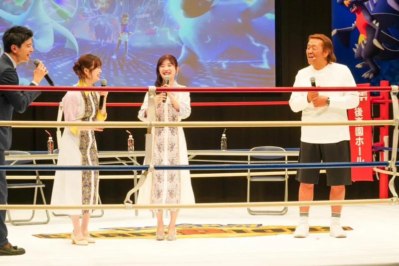 赤コーナーから登場したのは、引退後初の後楽園ホール入りとなるプロレス界のレジェンド・長州力さん。対する青コーナーには、芸能界屈指のポケモン好きとして知られる姉妹の武藤十夢さん・小麟さん(武藤シスターズ)が登場した。