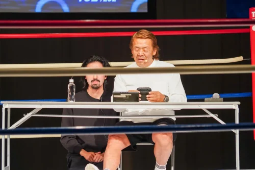 会場では、一部メディアが後楽園ホールのリングに上がり、大画面に対戦映像を映しながら、MCの解説付きでバトルを行う場面もあった。激しい読み合いの末に生まれたナイスプレーに、思わず筆者も手元の試遊機から目を離して見入ってしまい、勝負が決着した瞬間には周囲の記者と一緒に自然と拍手をしていた。観戦コンテンツとしての魅力もしっかりと感じられる一幕だった。