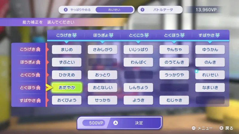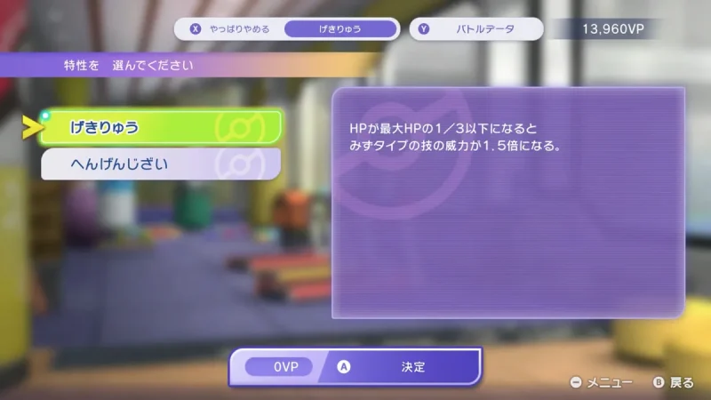 特徴的なのは、その後の「トレーニング」だ。本作では、VPを使うことで能力ポイントの配分や能力補正(従来の「せいかく」に相当)、わざ、特性まで自由に変更できる。