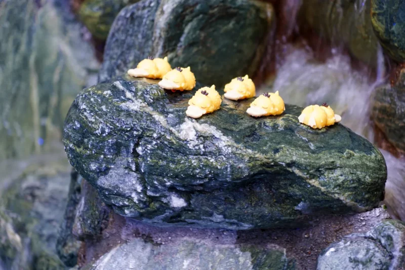 サウナの隣に用意されている水風呂周辺には、コダック型ソフビが設置。水風呂で一息ついているときにふと周囲を見回すと、コダックたちが可愛らしく寝そべっている姿を楽しむことができる。