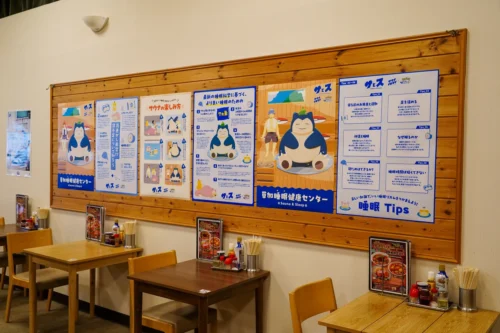 浴場エリアには、ポケモンたちのイラストが描かれたポスターや「サとス」の睡眠Tipsをまとめたポスターなどが掲出。お風呂にゆっくり浸かりながら読むのに適している。