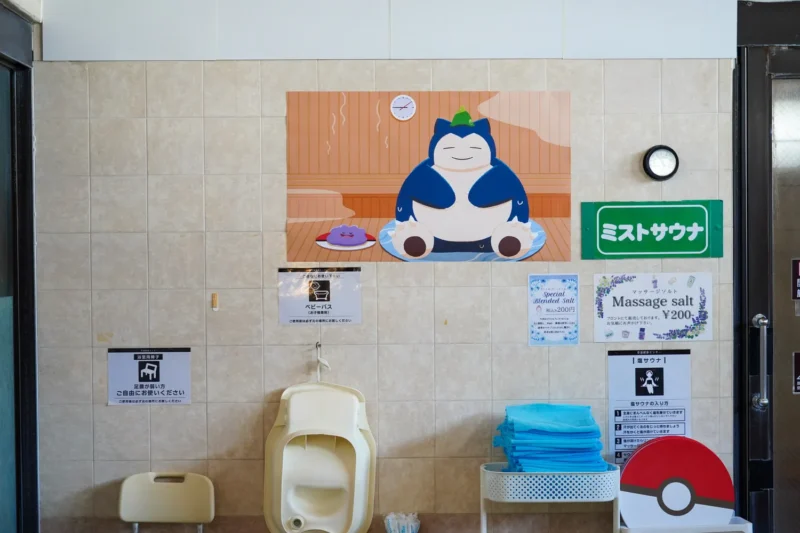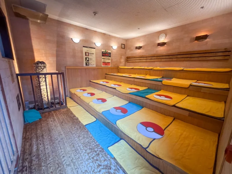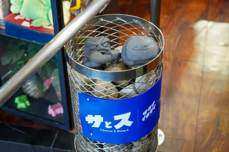 サウナ室では、入り口で展示されていたイシツブテ型・メタモン型の特別仕様のサウナストーンが使用されている。イシツブテは水が苦手なポケモンなので、できれば水をかけるのはメタモン型のサウナストーンだけにしてあげたいところ。