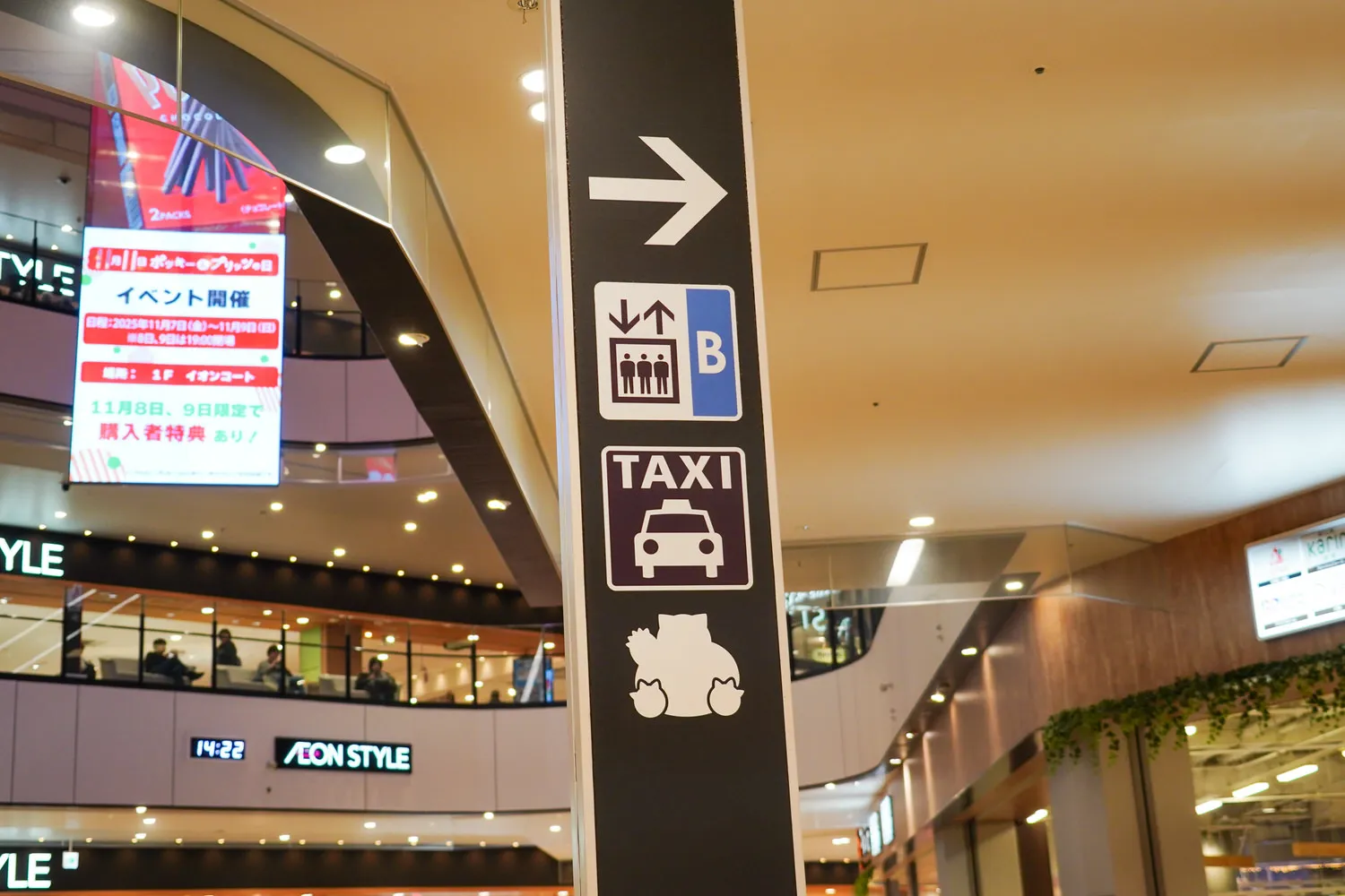 イオンモールの案内板の中にも、ポケモンたちのピクトグラムが。見逃してしまいそうな場所にひっそりと設置されていたりするので、色々なところを注意深く観察してみていただきたい。
