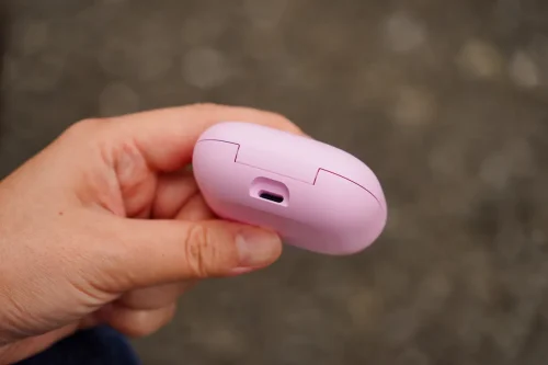 充電ケースは前モデルよりも17%小型化され、ポケットにも収まりやすくなっている。端子にはUSB Type-Cを採用しており、MacBookやiPhoneとケーブルを共用できる点も便利だ。