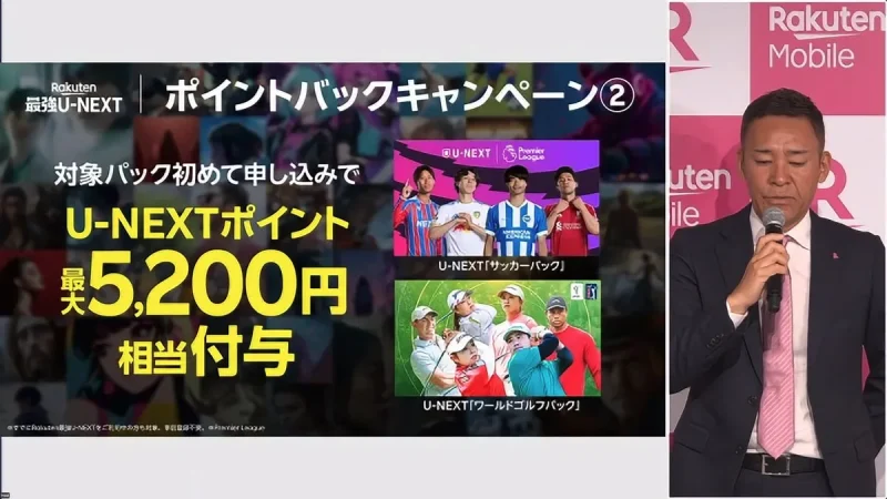 対象は「Rakuten最強U-NEXT」契約者で、すでに同プランを利用しているユーザーも含まれる。両パックに加入した場合、合計で最大5,200円相当のポイントが還元され、世界主要リーグのサッカーやゴルフツアーを1カ月間、実質無料で視聴できる計算となる。
