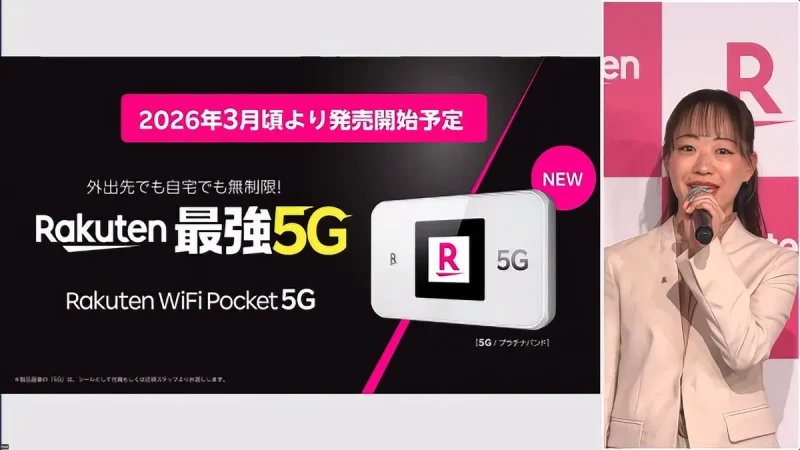 楽天モバイルは2月2日、都内でプレスカンファレンスを実施。5G通信に対応したオリジナルモバイルWi-Fiルーター「Rakuten Wi-Fi Pocket 5G」を2026年3月頃に発売すると発表した。同日より、一部ユーザーを対象に先行販売を開始する。