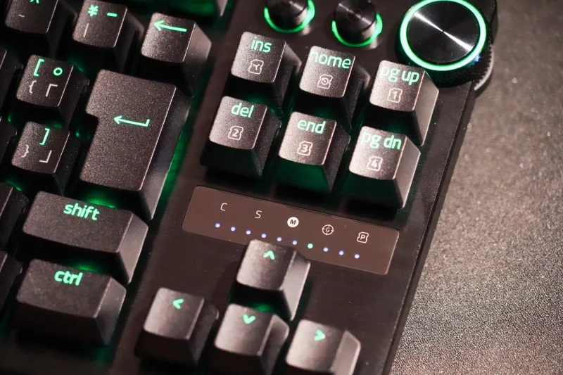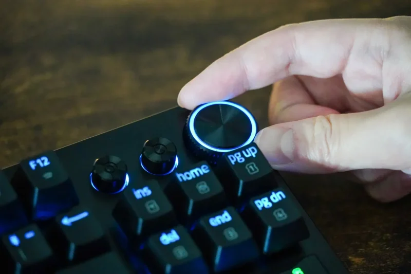 Snap Tapの設定はキーボード本体に4つまで保存可能で、マルチファンクション・ダイヤルやLEDインジケーターを使ってリアルタイムに切り替えられる。大会やプレイスタイルごとにセッティングを分けておけるのは、競技プレイヤーにとって大きな利点だ。