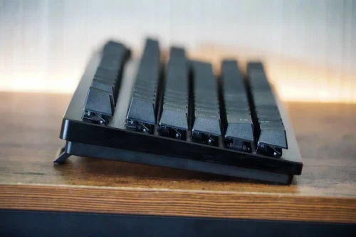 各キーは耐摩耗性のダブルショットPBTキーキャップを採用しており、摩耗やテカリを防ぎ、長期間の使用にも耐えられるようになっている。