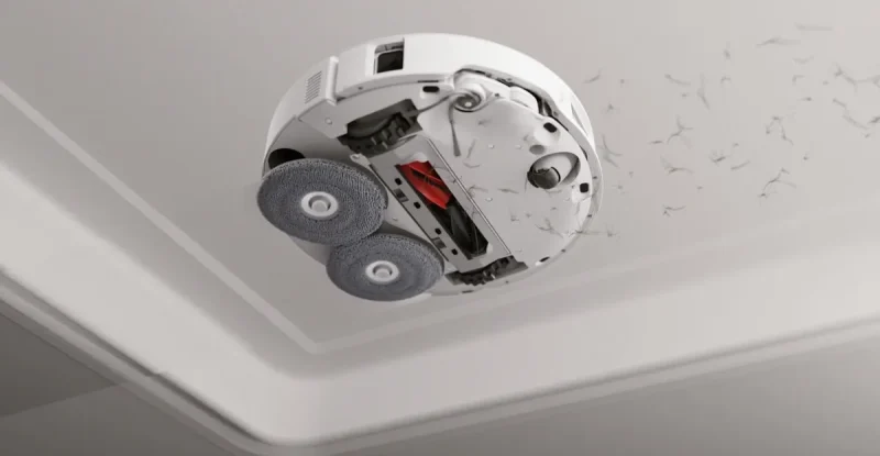 四隅ではサイドブラシが自動で伸び、壁際ではモップが近づいて拭き残しを減らす。メインブラシとサイドブラシは毛が絡みにくい構造で、髪の毛やペットの毛もスムーズに吸引する。