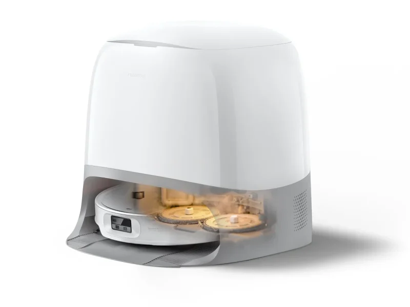 付属の全自動ドックは、ゴミ収集、モップ洗浄、乾燥、給水までをまとめて行う。モップは最大100度の温水で洗浄され、洗浄後は温風で乾燥するため、清潔な状態を保ちやすい。ゴミは最大60日分をまとめて回収できる。