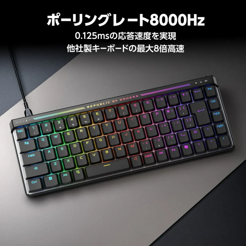 ASUSのゲーミングブランド「Republic of Gamers(ROG)」は、コンパクトな65%サイズの日本語配列キーボード「ROG Falchion Ace HFX Gaming Keyboard」を発表した。