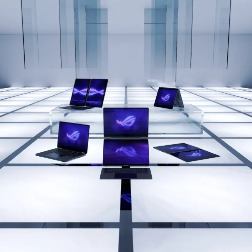 ノートPCでは、16インチのデュアルディスプレイを搭載した世界初のコンバーチブル2-in-1モデル「ROG Zephyrus DUO GX651」が発表された。最新のIntel Core Ultra(シリーズ3)とGeForce RTX 5090 Laptop GPUを採用し、320度回転するヒンジによって5つの利用モードに対応する。