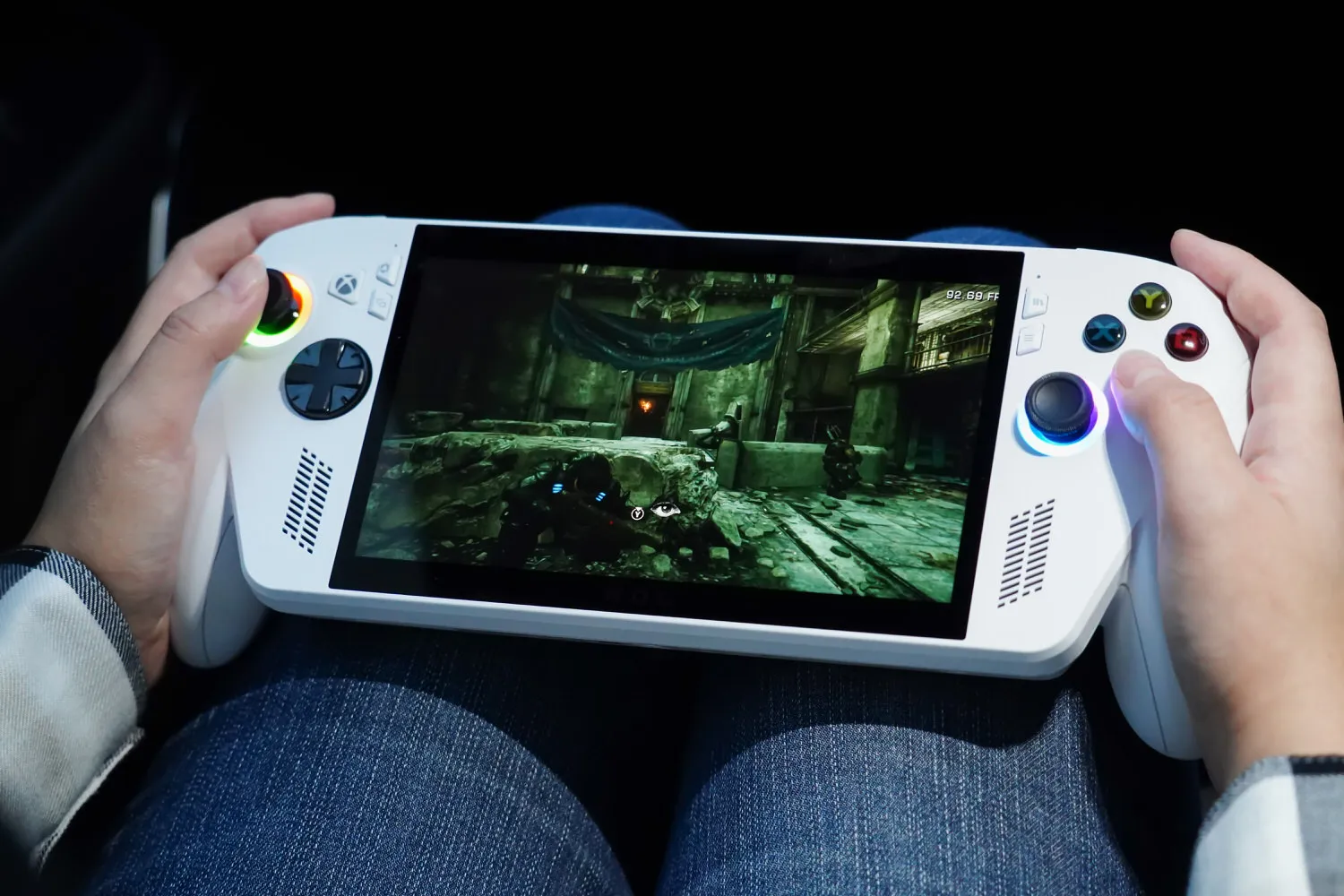 バッテリー容量は60Wh。パフォーマンスモードで『Gears of War: Reloaded』をプレイしたところ、約2時間半プレイできた。電源接続なしでプレイできるのは2〜3時間が限度だろう。本体は約1時間半でフル充電可能だ。