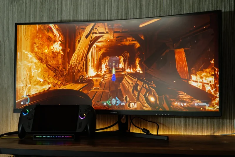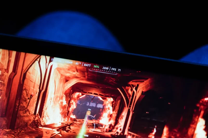 今回は本体を電源に接続し、ターボモードにした状態で『DOOM: The Dark Ages』をプレイしてみた。本作は、今年5月に発売したばかりのシューティングで、idTech8エンジンを用いた高品質なグラフィックス(レイトレーシング対応の動的照明・影、破壊表現の強化など)を特徴としているため、負荷は高めのゲームとして知られている。
