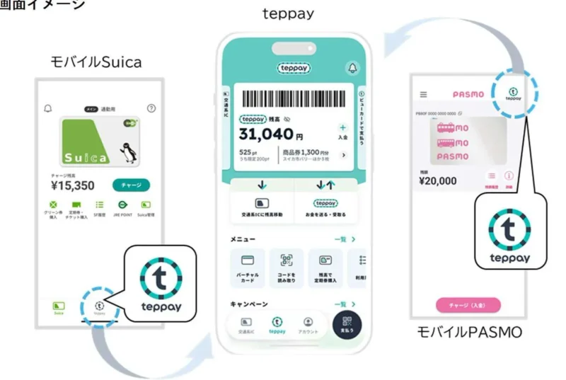 JR東日本と株式会社パスモは11月25日、モバイルSuicaおよびモバイルPASMOのアプリをアップデートし、新たにコード決済サービス「teppay(テッペイ)」を2026年秋より順次提供開始すると発表した。