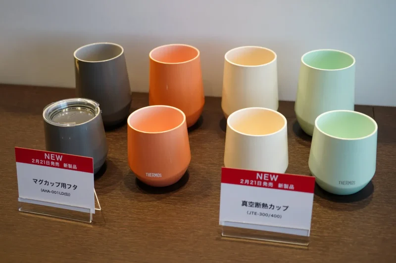卓上向けでは、「真空断熱カップ(JTEシリーズ)」にサーモス独自のセラミック加工「セラクリーンコート」を内面に採用した。撥水性が高く、汚れやニオイが付きにくいため、飲み終わった後の手入れが簡単になる。