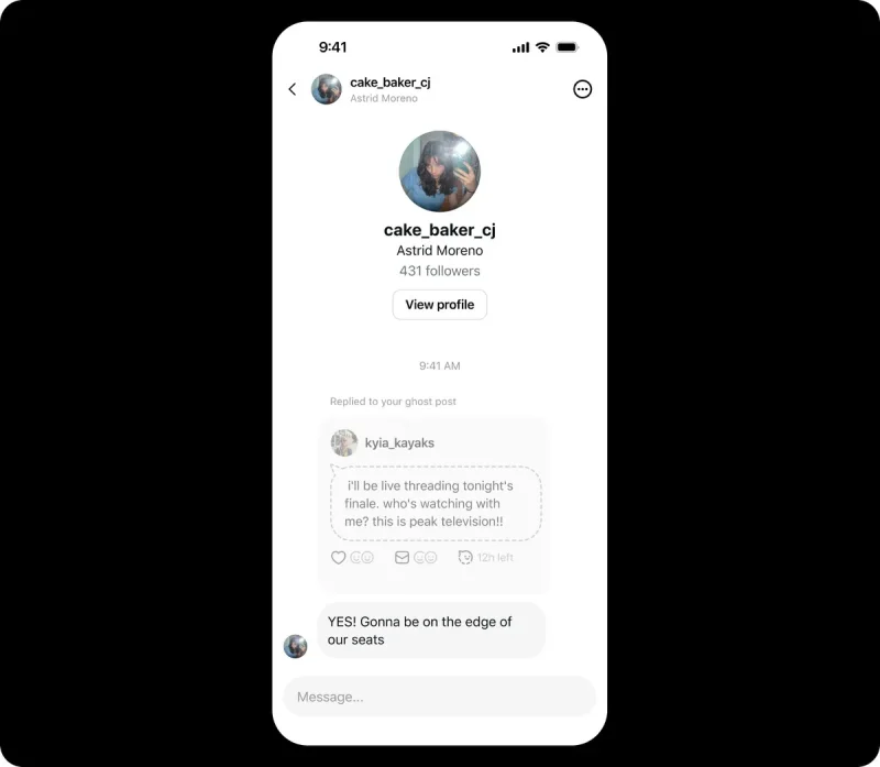 ゴーストポストは、タイムライン上に灰色の点線バブルで表示され、通常のポストと視覚的に区別されるかたちで投稿される。投稿に付いたスマイリーフェイスアイコンで、他ユーザーがいいねや返信したかは表示されるが、誰が反応したかは投稿者のみが確認できる仕組みだ。